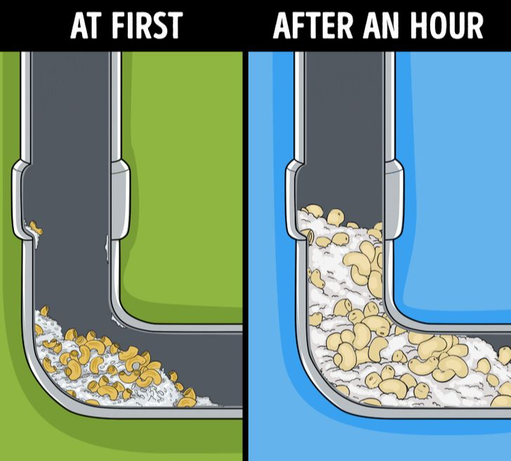 Gelangen Reste in den Abfluss verkleben sie leicht miteinander und bilden zähe Klumpen die sich mit Fett oder anderen Speiseresten verbinden. Dadurch entstehen hartnäckige Engstellen die den Durchfluss verlangsamen und später zu kompletten Verstopfungen führen können.