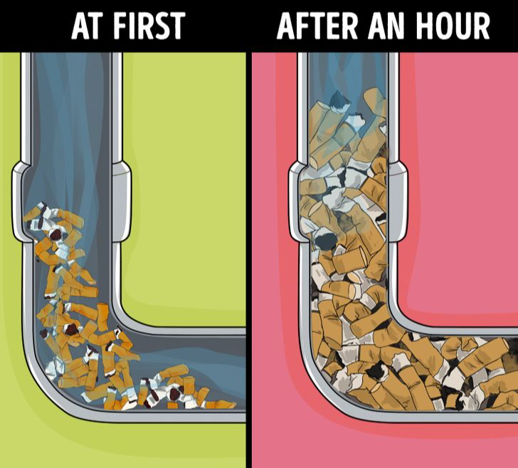 Zigarettenstummel erscheinen klein besitzen jedoch filternde Materialien die Flüssigkeit binden und dadurch im Rohr aufquellen können. So entsteht eine mechanische Barriere für den Abfluss.