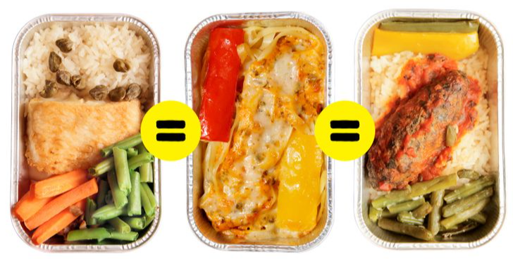 Die klassische Wahl an Bord lautet häufig Fisch oder Huhn. Da Huhn oft zuerst verlangt wird erhalten später Sitzende gelegentlich nur noch die zweite Option. Um Enttäuschung zu mindern stellen manche Crews das verbleibende Gericht als besondere Auswahl vor.