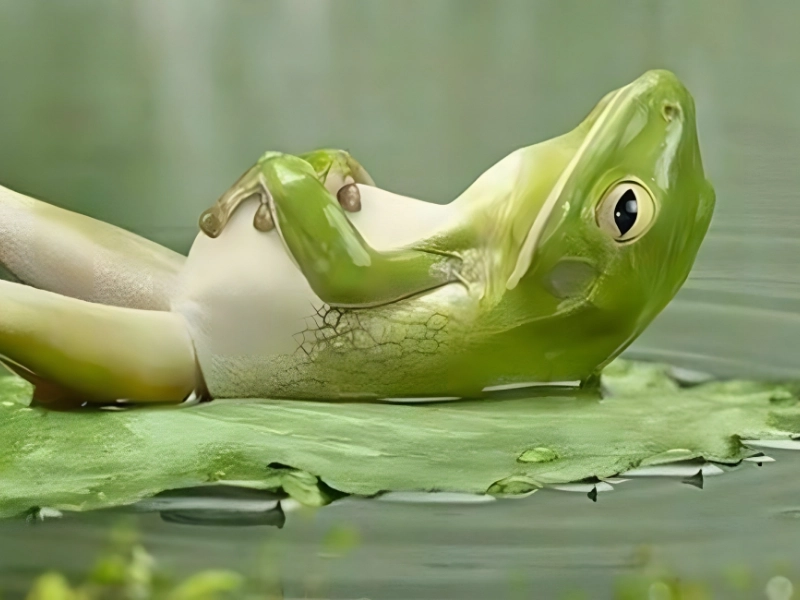 Wenn Sie ein Frosch sind, warum nicht auf einem Seerosenblatt entspannen? Ohne Sorgen genießt dieser Frosch die Ruhe, vielleicht denkt er über seine nächste Mahlzeit nach. Eine Makrokamera wie die Nikon Z5 hat diesen charmanten Moment in beeindruckenden Details eingefangen.