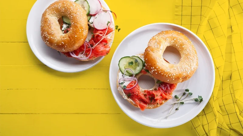 Bagels wirken als praktisches Unterwegs Frühstück sind jedoch zumeist aus Weißmehl hergestellt das arm an Ballaststoffen und Mikronährstoffen ist. Beliebte Füllungen wie fettreicher Frischkäse oder sehr salzige Aufschnitte erhöhen Energie und Salzanteil. Besser ist seltene Nutzung in kleinerer Größe kombiniert mit einer dünnen Schicht magerem Frischkäse etwas Räucherlachs Qualitäts Kräutern oder maßvollem Nussmus. Eine Alternative bilden Vollkorn Varianten die länger sättigen und gleichmäßigen Blutzuckerverlauf unterstützen.