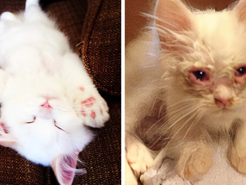 Silas wurde in sehr schlechtem Zustand am Straßenrand gefunden. Nach sorgfältiger Pflege kam unter Schmutz und Verfilzungen ein eindrucksvoll flauschiges Fell zum Vorschein. Heute präsentiert er sich gesund neugierig spielt gern und hat sogar ein eigenes Profil in sozialen Medien.