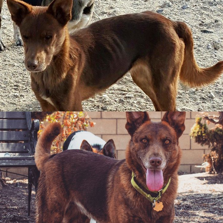 Ein Nutzer freundete sich im Tierheim mit diesem Hund an und teilte später Fotos nachdem das Tier ein Zuhause gefunden hatte. Aus einem extrem dünnen unsicheren Hund wurde ein fröhlicher ausgelassener Gefährte der unbeschwert tobt. Der Abschied fiel schwer doch die Entwicklung erfüllt mit Freude.