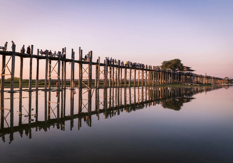 Die U Bein Brücke aus dem Jahr 1850 gilt als längste Teakholzbrücke der Welt und überspannt den Taungthaman See in Myanmar. Witterung und Alterung stellen Pflegeaufgaben dar weshalb verstärkt auf Erhaltung und geordneten Besuch geachtet wird. Trotz dieser Herausforderungen bleibt die Brücke ein wichtiger Übergang sowie ein kulturelles Symbol das Alltagsleben und Tradition verbindet.