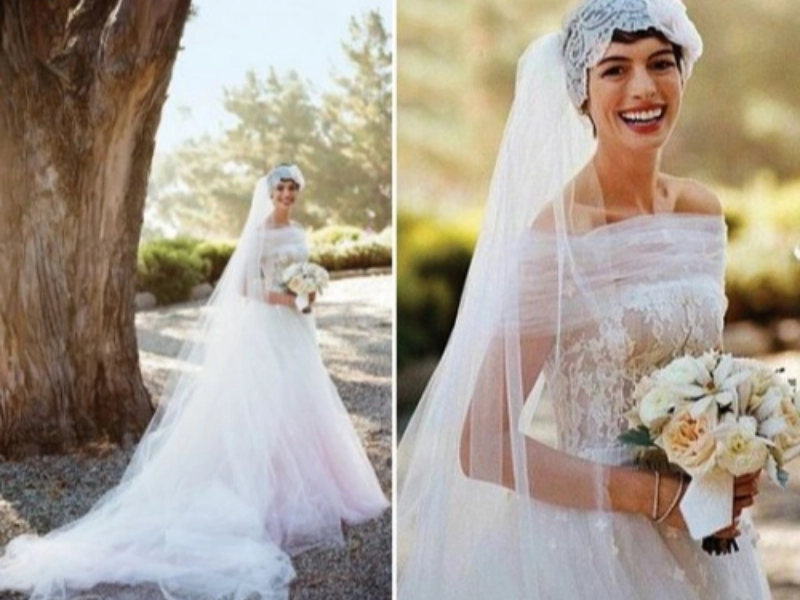 Anne Hathaway entschied sich für ein Valentino Kleid das Romantik und feminine Leichtigkeit ausstrahlte. Ein zart roséfarbener Saum und ein Spitzen Schleier verliehen dem Ensemble einen verträumten Akzent während filigrane Details feinen Geschmack erkennen ließen.