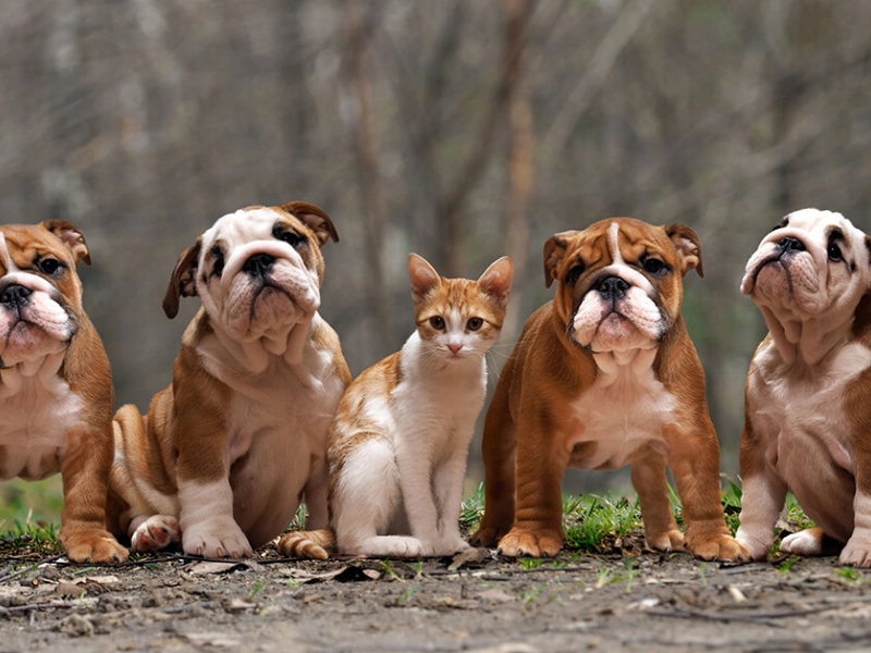 4 Dogs and one deserving spy. The challenge here is to spot the hidden figure among the playful pups, a task made all the more difficult by clever camouflage. This image turns a simple gathering into a delightful game, inviting viewers to test their observation skills and enjoy the thrill of discovery.