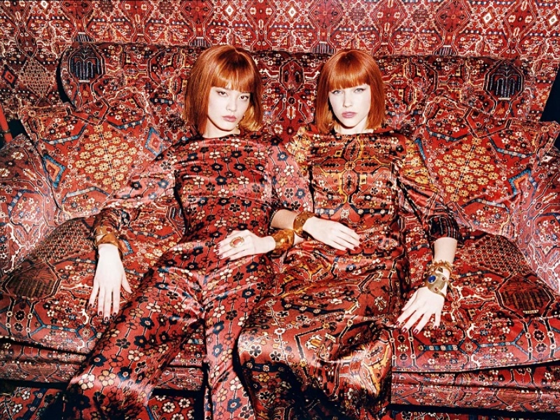 Two dresses were made from surplus fabric, and the result is a delightful display of accidental camouflage. With their outfits echoing the patterns of their surroundings, the wearers almost disappear into the background. This image highlights how fashion and environment can collide in unexpected ways, creating moments of visual harmony that are both amusing and stylish.