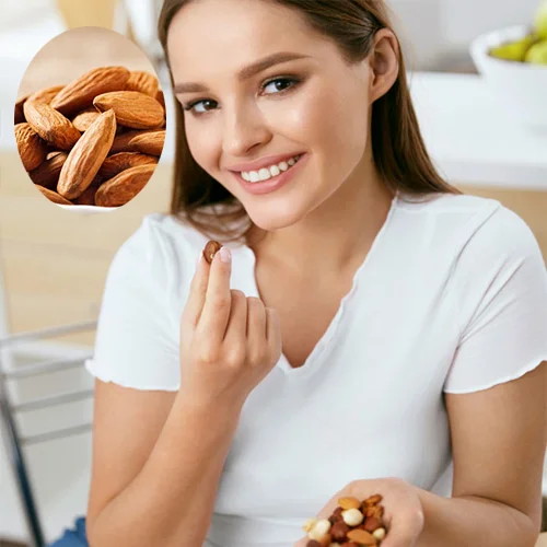 The fiber in almonds binds cholesterol in the digestive system, preventing its absorption and lowering cholesterol levels. Plant sterols also block cholesterol absorption in the gut, further reducing total cholesterol.