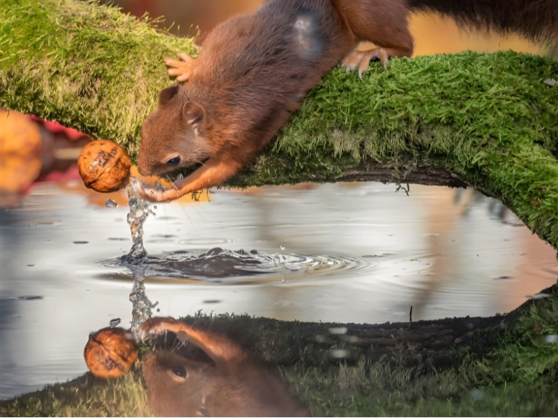 She washes her nut before eating it—what a clever girl. This charming image captures a female animal—likely a raccoon or perhaps a highly intelligent species of monkey or ape—engaged in the remarkably sophisticated behavior of washing her food before consumption. The photo freezes a moment that highlights the creature's intelligence and adaptability, traits often associated with higher cognitive abilities. The subject is typically seen near a water source—perhaps a stream, pond, or even a human-made water bowl—carefully manipulating a nut or other food item in the water. While this behavior is instinctive in some animals, it appears almost human-like in its hygienic awareness. The photographer's timing allows viewers to witness this brief yet significant act in the animal's feeding routine, offering insight into the complex behaviors that abound in the animal kingdom. The use of "clever girl" in the description adds a touch of anthropomorphism and endearment, encouraging viewers to appreciate the animal's intelligence. This image not only amuses but also educates, sparking conversations about animal cognition, learned behaviors, and the surprising parallels between human and animal actions.