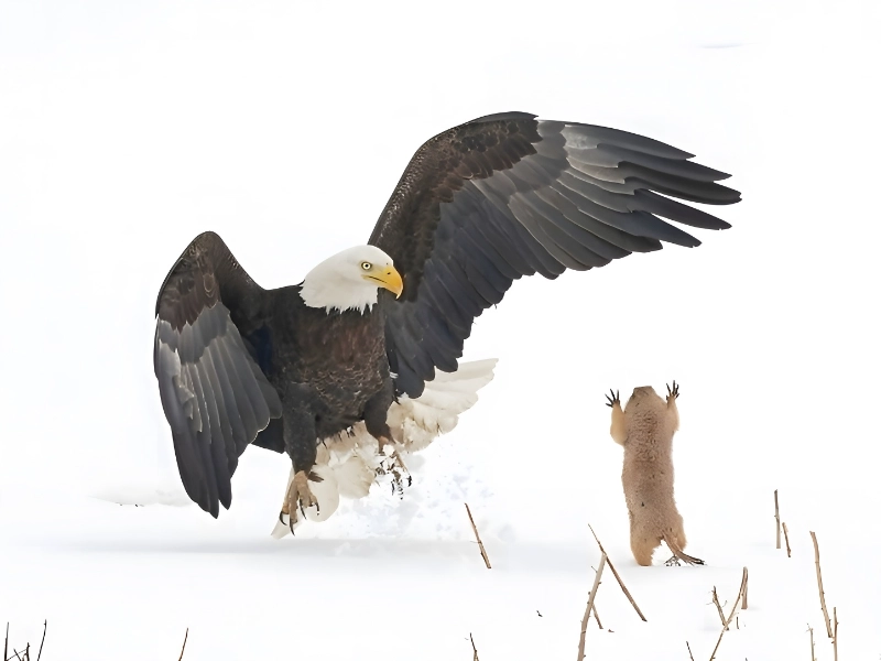 "I surrender!" This humorous image captures a moment of apparent defeat in the animal kingdom, creating a funny and endearing scene. The subject, likely a furry or feathered creature, is caught in a pose that strikingly resembles a person giving up. Perhaps it's a raccoon with its paws raised, a prairie dog standing on its hind legs with forepaws lifted, or even a bird with wings spread wide. The animal appears to be throwing in the towel in some invisible struggle, as its posture and demeanor combine to create an almost perfect imitation of human body language. This anthropomorphic quality is what makes the image so striking and amusing. The photographer's impeccable timing has frozen this split-second pose, allowing viewers to project human emotions and intentions onto the animal. While the creature isn't actually surrendering, the resemblance to human behavior is unmistakable and entertaining. This image not only entertains but also reminds us of our connection to the animal world, highlighting the surprising similarities in body language across species. It's a testament to the photographer's skill in capturing such a precisely timed and expressive moment in nature.