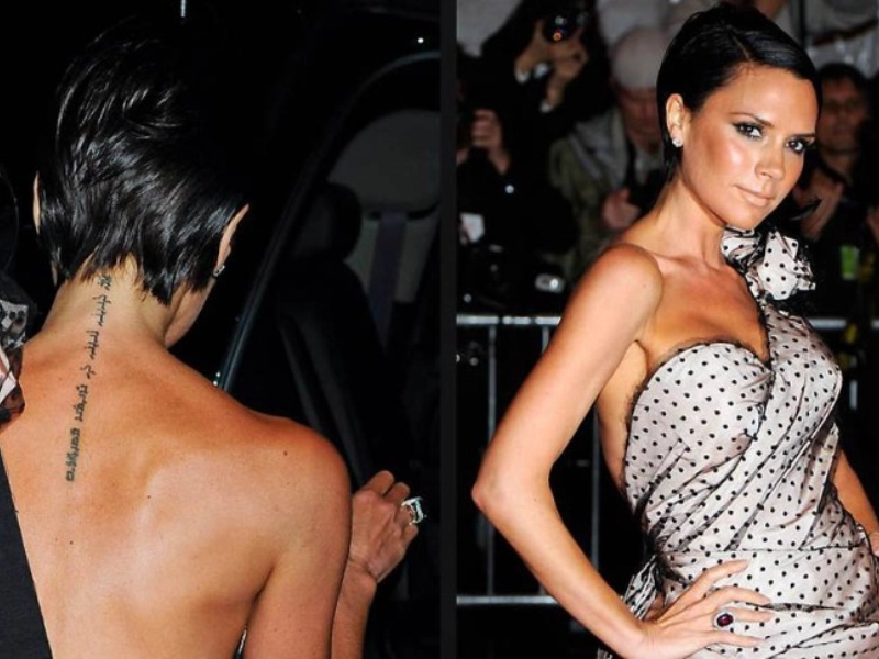Victoria Beckham: Tattoos with Deep Meaning Victoria Beckham has a tattoo in Hebrew that says, "I am my beloved's, and my beloved is mine." This meaningful phrase represents love and commitment, especially to her family and husband, David Beckham.
