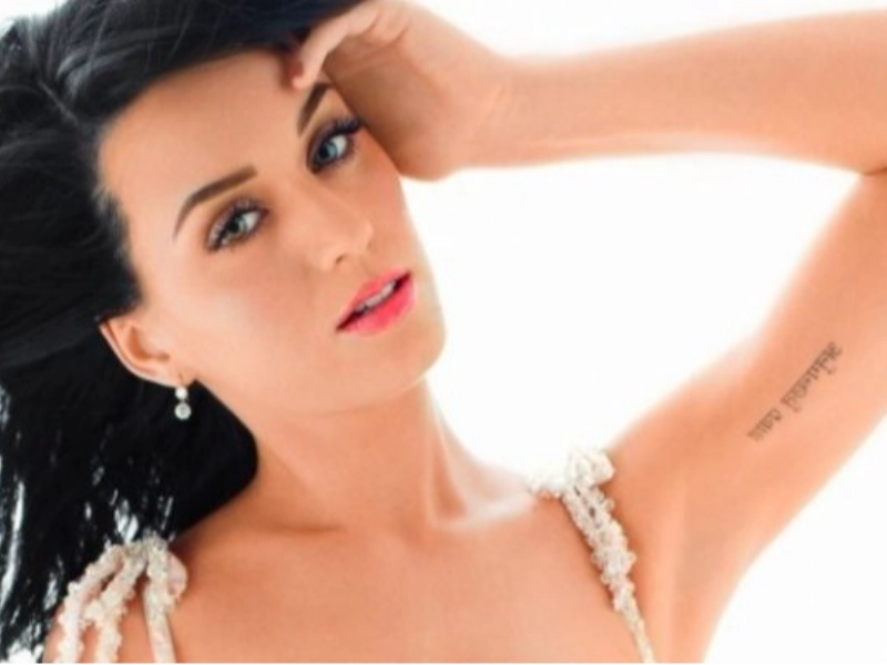Katy Perry: Playful and Spiritual Tattoos Katy Perry is known for her vibrant tattoos. She has a Hello Kitty face on her finger, small strawberries and candy on her ankle, and a "Jesus" tattoo that reflects her spiritual beliefs.