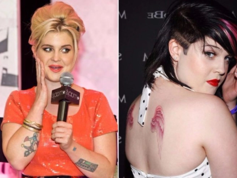 Kelly Osbourne's tattoos include angel wings on her back for protection and freedom, and a synthesizer on her arm, revealing her passion for music and creativity.