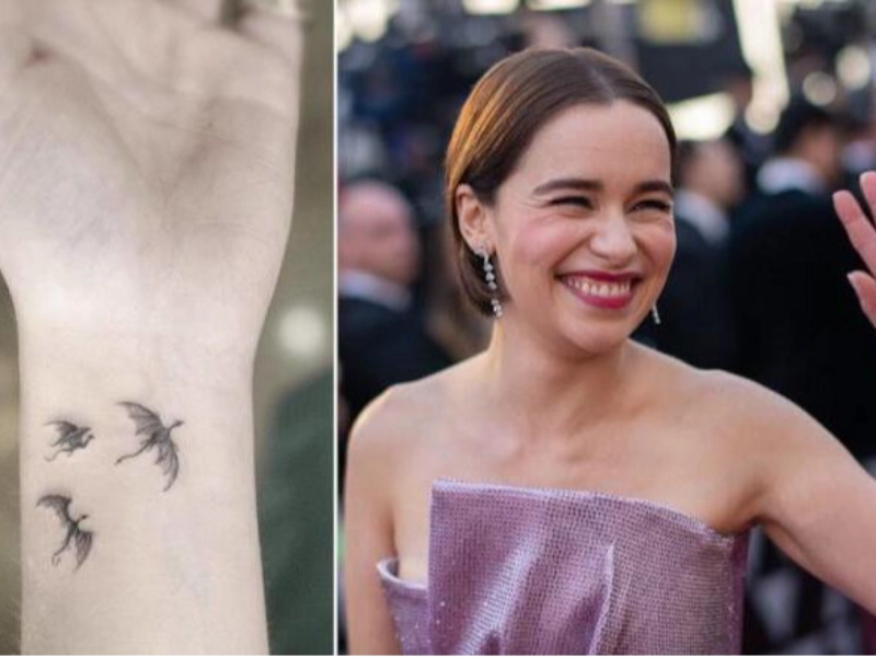 Emilia Clarke: Honoring the Mother of Dragons After "Game of Thrones," Emilia Clarke celebrated her role with a tattoo of small dragons on her wrist. This delicate design connects her to her character Daenerys Targaryen and the powerful journey she experienced.