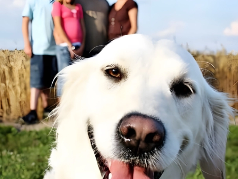 Honestly, it looks like the family is photobombing the dog's great photo. It's even better that everyone else is blurry.