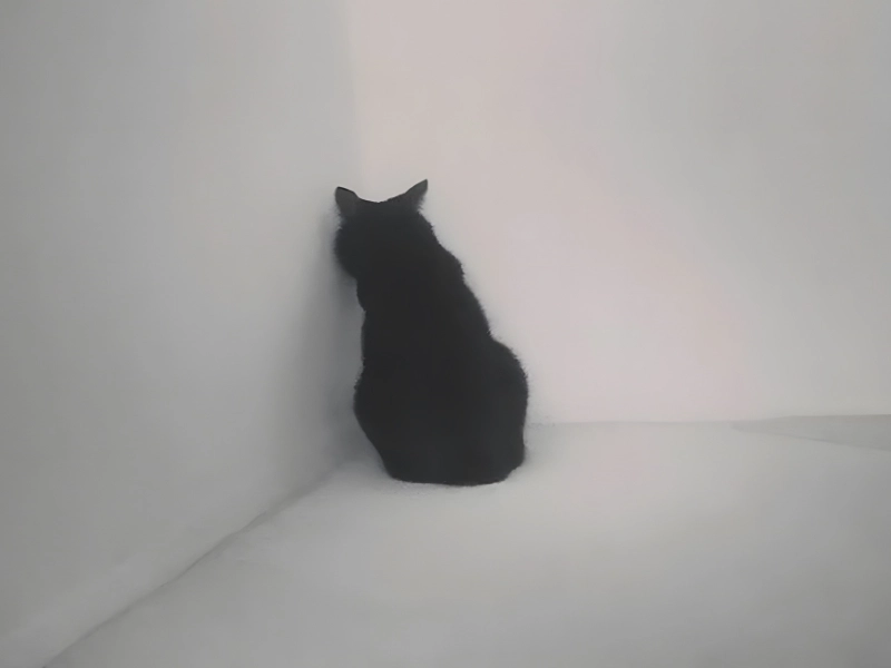 Just like the famous movie line, "Nobody puts Baby in the corner," this cat has chosen a solitary spot, facing the wall and ignoring the world.