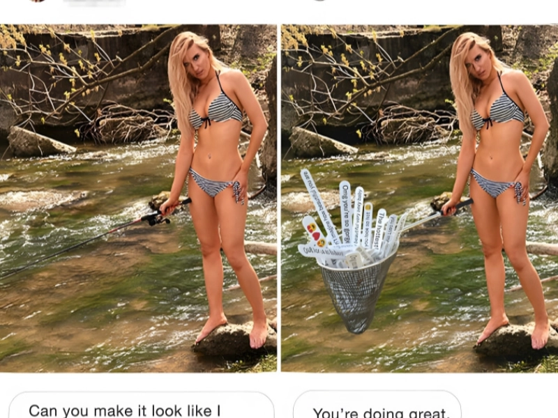 You can most likely relate to a picture on social media of someone hiking or engaging in another outdoor activity if they are totally dressed inappropriate for the situation. Still, this girl understood what she was getting into when she requested a picture of her clutching a fishing pole to be edited. Can you make it look like I truly know how to fish? she asked.