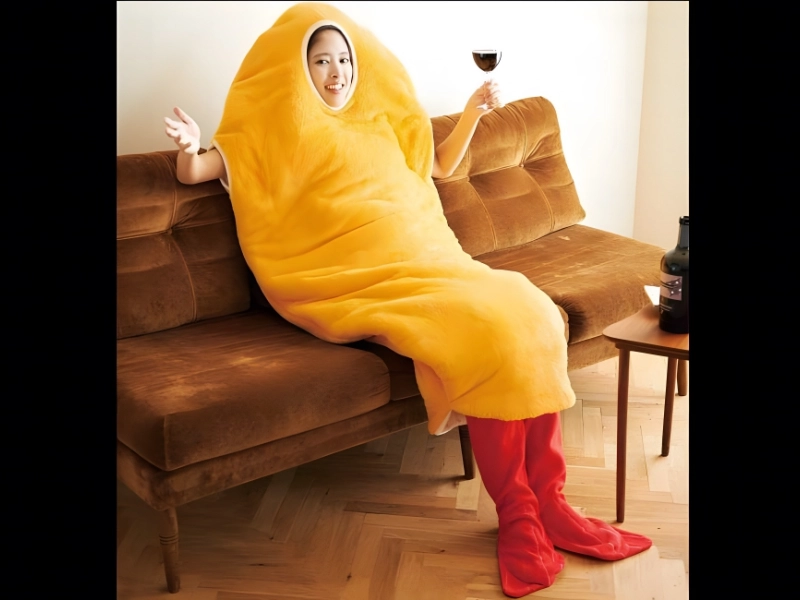 年にデザイン。平均価格: 59.99 ドル* フェリシモがこの商品を最初に提供したとき、それは同社の典型的な猫をテーマにした商品とは一線を画すものでした。フェリシモではもう販売されていないようですが、eBay などのインターネット ストアからこの揚げたてのエビのワンジーを購入できます。このワンジーは実際に寝袋として使用できます。