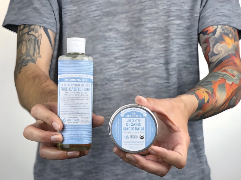 ないでください タトゥーの傷口に空気が流れることで、治癒プロセスが加速されます。入れたばかりのタトゥーにワセリン (またはネオスポリン、アルコール、ローションなど) を塗ると、感染の危険があります。タトゥーの傷口を洗浄するには、タトゥー アーティストに強く推奨されている Bronner の Castile などの刺激の少ない石鹸を使用してください。