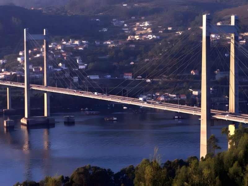 ランデ橋は、現代の工学とデザインの偉業であり、スペインのガリシア州にあるランデ海峡の穏やかな海に架かっています。この 2,500 万ドルの斜張橋は、ビーゴ市とレドンデラ市を結び、1978 年に建設され、ガリシア州の北部と南部を結ぶ重要な交通路として機能しました。