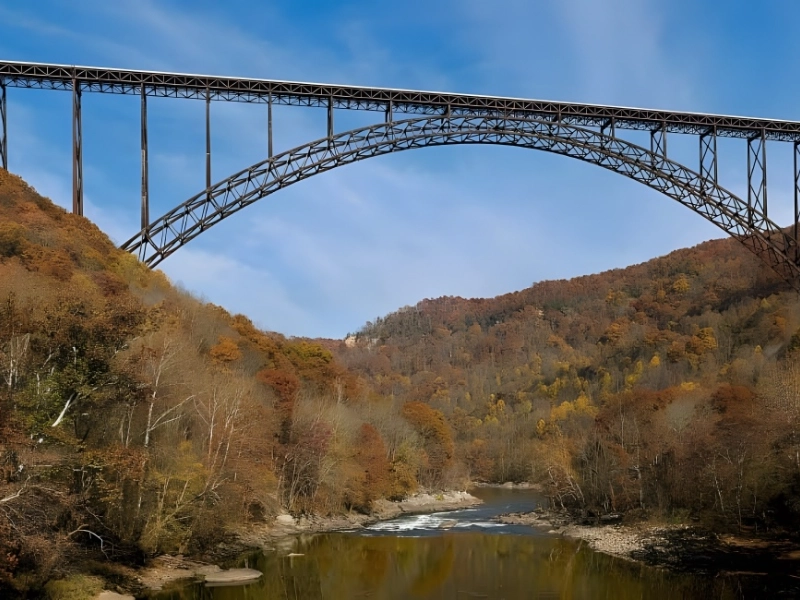 米国ウェストバージニア州に所在 1977 年に建設 価格: 3,700 万ドル 息を呑むような景色と爽快な感覚を提供する米国ウェストバージニア州のニュー リバー ゴージ橋は、自然のニュー リバー ゴージを渡る工学上の驚異です。世界最長の単径間アーチ橋の 1 つであるこの鋼製アーチ橋は、1977 年に完成し、924 メートルにわたって峡谷に架かっています。