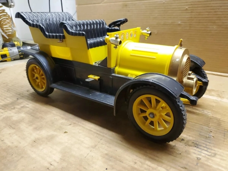 この製品は、ウールワース カンパニーのモンゴメリー ワードでレムコ社によって販売されました。 レムコ フライング ダッチマンは 4.99 ドルで購入できます。子供たちは、丹念に作られたデザインが自動車全盛期の興奮を呼び起こすアンティーク カーに乗って、懐かしい旅に誘われました。ゼンマイを巻き上げるたびに床の上を走り、ハイスピードの追跡と昔の壮大さの物語を繰り広げます。