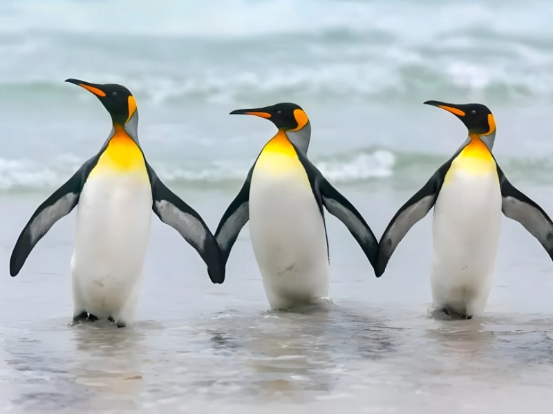 Flosse in Flosse Gemeinsam Weiter Diese liebenswerte Aufnahme zeigt drei Königspinguine die den Strand entlanggehen und sich leicht berühren. Sie wurde für die Comedy Wildlife Sammlung 2023 ausgewählt und unterstreicht still Parallelen zwischen tierischen und menschlichen Beziehungen.