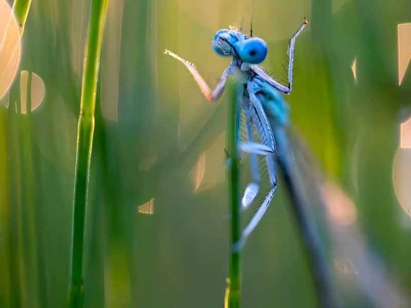 Dieses zauberhafte Foto könnte aus einem Animationsfilm stammen und begleitet eine Libelle gleichsam auf einer poetischen Reise. Der Moment endet in einer Pose in der die Libelle beinahe wie etwas gänzlich Neues und Elegantes erscheint.