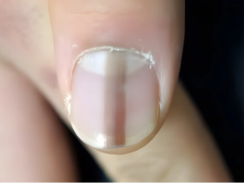 Dunkle Linien oder Streifen unter der Platte können nach einem Stoß oder Einklemmen entstehen wenn sich etwas Blut pigmentartig ablagert. Zeigen sich jedoch dunkle schmale bis breiter werdende Streifen ohne erinnerliches Trauma sollte rasch ärztliche Abklärung erfolgen da selten auch eine ernstere pigmentierte Hautveränderung unter dem Nagel dahinterstecken kann. Medizinisch spricht man bei bestimmten Linien von Melanonychien. Manche unauffälligen Streifen sind durch Medikamente hormonelle Veränderungen oder genetische Faktoren erklärbar. Jeder neu auftretende oder sich deutlich verändernde Streifen besonders an nur einem Nagel verdient Aufmerksamkeit. Früh erkannte Auffälligkeiten lassen sich oft gezielt einordnen. Wird ein dunkler Streifen breiter dunkler oder unscharf konturiert sollte zeitnah ein fachlicher Blick eingeholt werden.